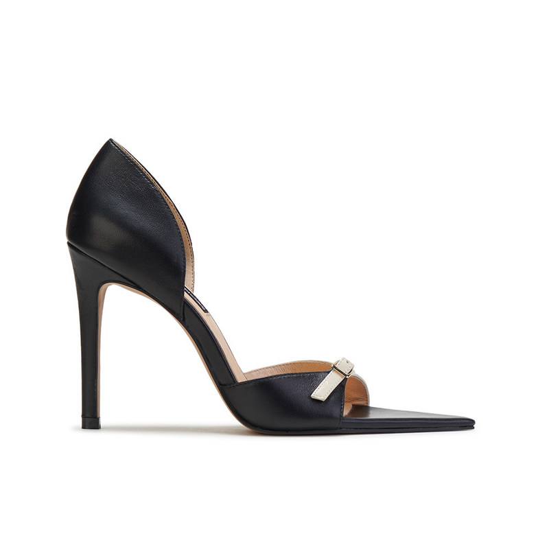 মহিলাদের বন্ধ কালো পয়েন্টেড পায়ে স্লিপ-অন স্টিলেট হিল রাবার আউটসোল স্ট্র্যাপ স্যান্ডালস অফ কাজের বাজার